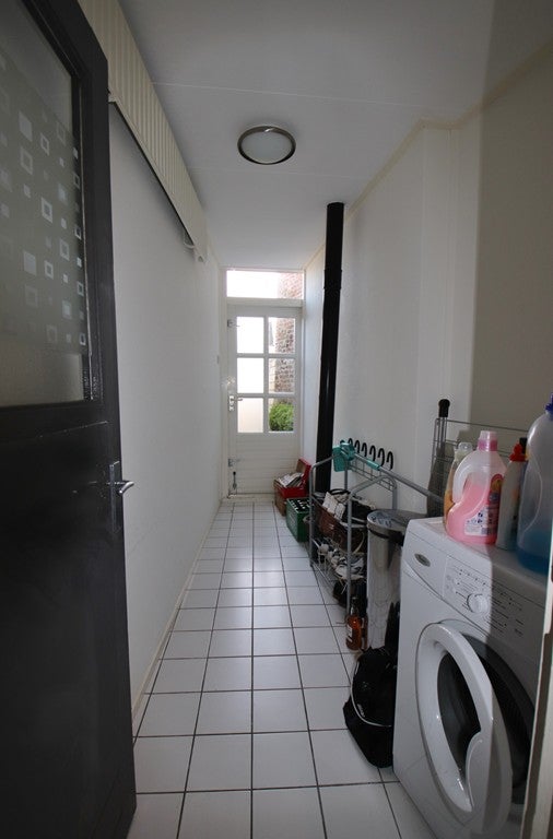 entree, voorportaal, eetkamer, keuken met keukenblok met inbouwapparatuur, bijkeuken met plavuizen vloer, betegelde achtertuin met stenen ( opgetrokken uit geeltjes ) bergschuur en vrij achterom.