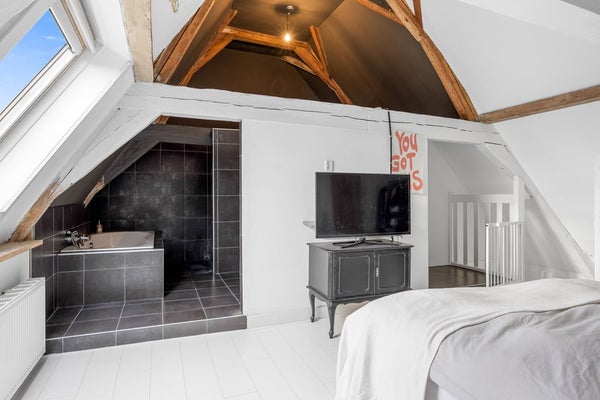 Middels een vaste trap is er toegang naar de ruime 2e verdieping. Op deze verdieping bevindt zich de royale ouderslaapkamer met een luxe badkamer en suite. Deze 4e slaapkamer is bijzonder fraai uitgevoerd, waarbij de oude balkenconstructie en de hoge plafonds een bijzonder prettige sfeer geven.