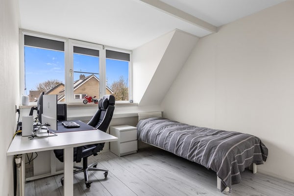 Middels een vaste trap is er toegang naar de ruime 2e verdieping. Het grote dakvenster zorgt in deze ruimte voor voldoende lichtinval en de kamer is thans in gebruik als thuiswerkplek. De cv-installatie bevindt zich eveneens op deze verdieping.