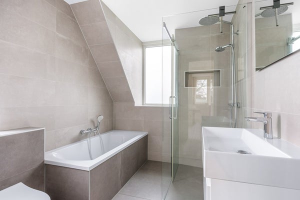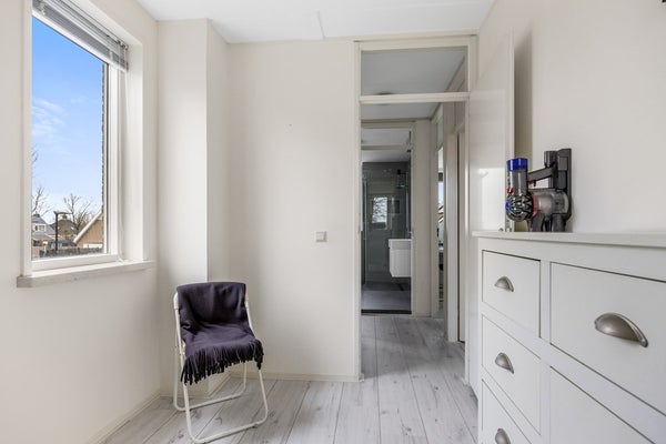 De eerste verdieping beschikt over een centrale overloop, een badkamer en 3 slaapkamers. De 2 dakkapellen zorgen voor extra ruimte en lichtinval in de slaapkamers. De moderne badkamer heeft een praktische indeling en is zeer compleet met een ligbad, douche, 2e toilet en een wastafel.