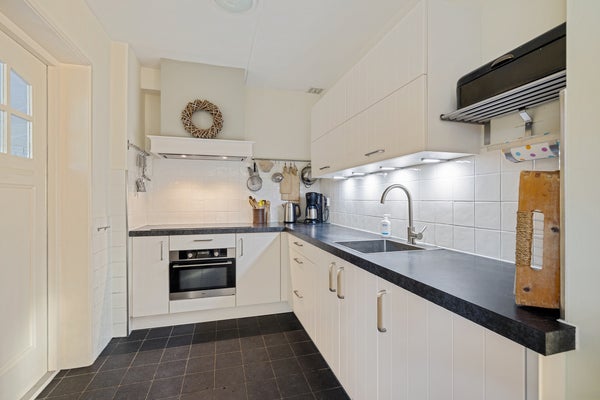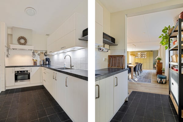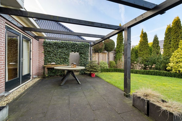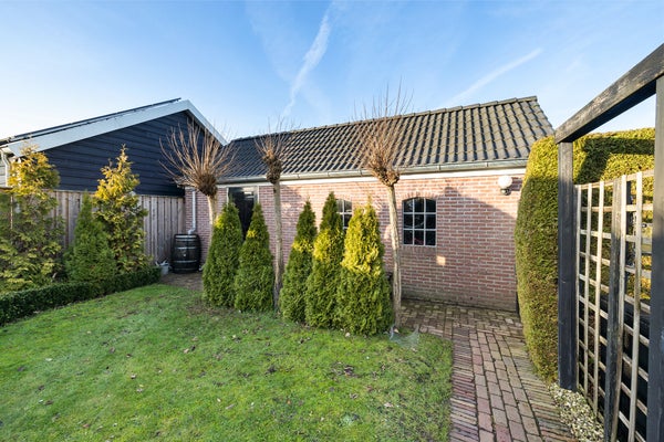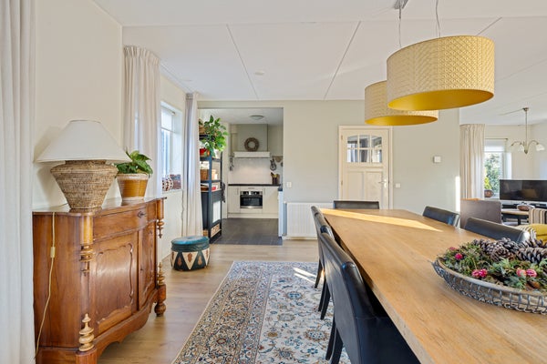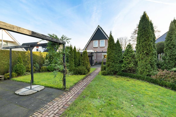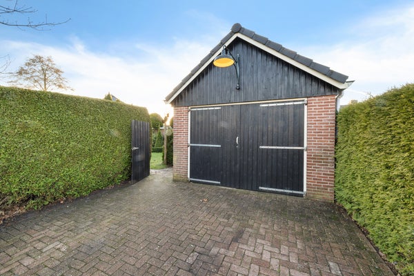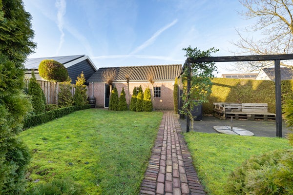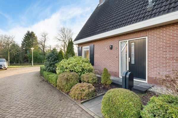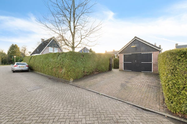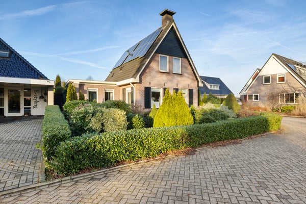 Deze goed onderhouden vrijstaande woning met een ruime garage ligt in een rustige woonomgeving waar privacy en vrij uitzicht centraal staan. Met een woonoppervlak van circa 119 m² is er genoeg ruimte voor een gezin. De indeling op de begane grond omvat een zij-entree, een ruime woonkamer met zithoek en houtkachel, en een halfopen keuken met inbouwapparatuur. De bijkeuken biedt praktische opbergruimte. Op de verdieping zijn drie slaapkamers en de badkamer met ligbad en douche. De bergzolder is bereikbaar via een vlizotrap.