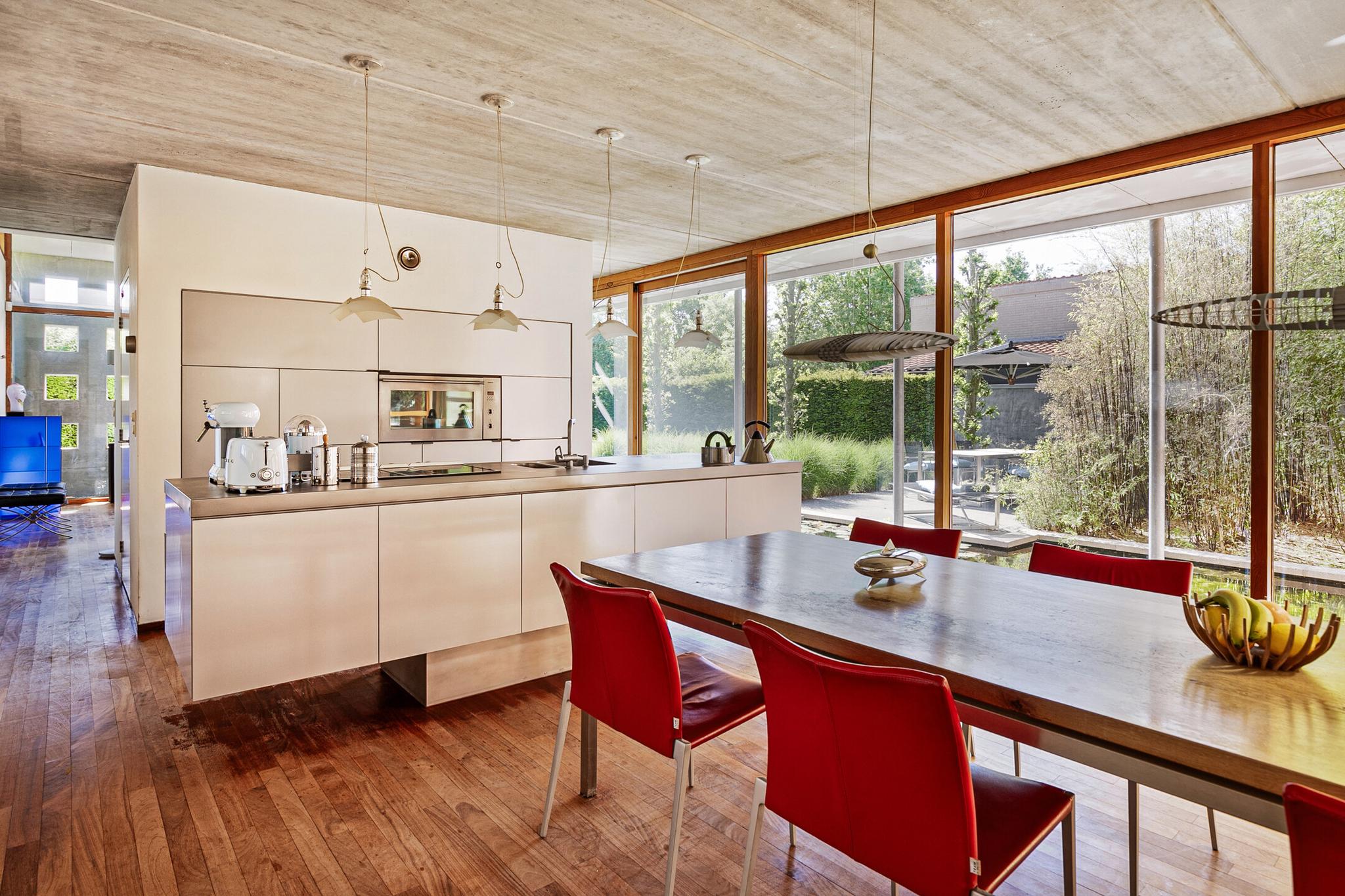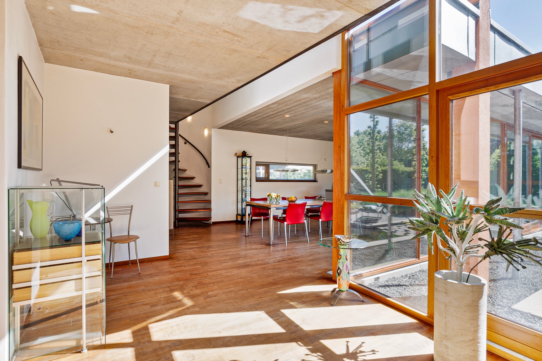Deze stijlvolle, onder architectuur gebouwde villa, ontworpen door Architectenbureau Peter Agterberg in 1999, ligt op een rustige hoek aan de Draagsteen. Met een woonoppervlakte van 184 m² en een perceel van 735 m², biedt deze woning veel natuurlijk licht dankzij de grote glaspartijen. De indeling op de begane grond omvat een entree, toilet, berging, werkkamer en een royale open keuken met kookeiland en inbouwapparatuur. De woonkamer van 24 m² is omgeven door glas en biedt zicht op de tuin. Op de eerste verdieping zijn drie slaapkamers, een badkamer en een dakterras. De tuin is zongericht op het zuiden, biedt privacy en heeft een vijver. De woning beschikt over een garage en is volledig geïsoleerd met energielabel A. Borger, nabij Assen en Emmen, biedt alle voorzieningen.