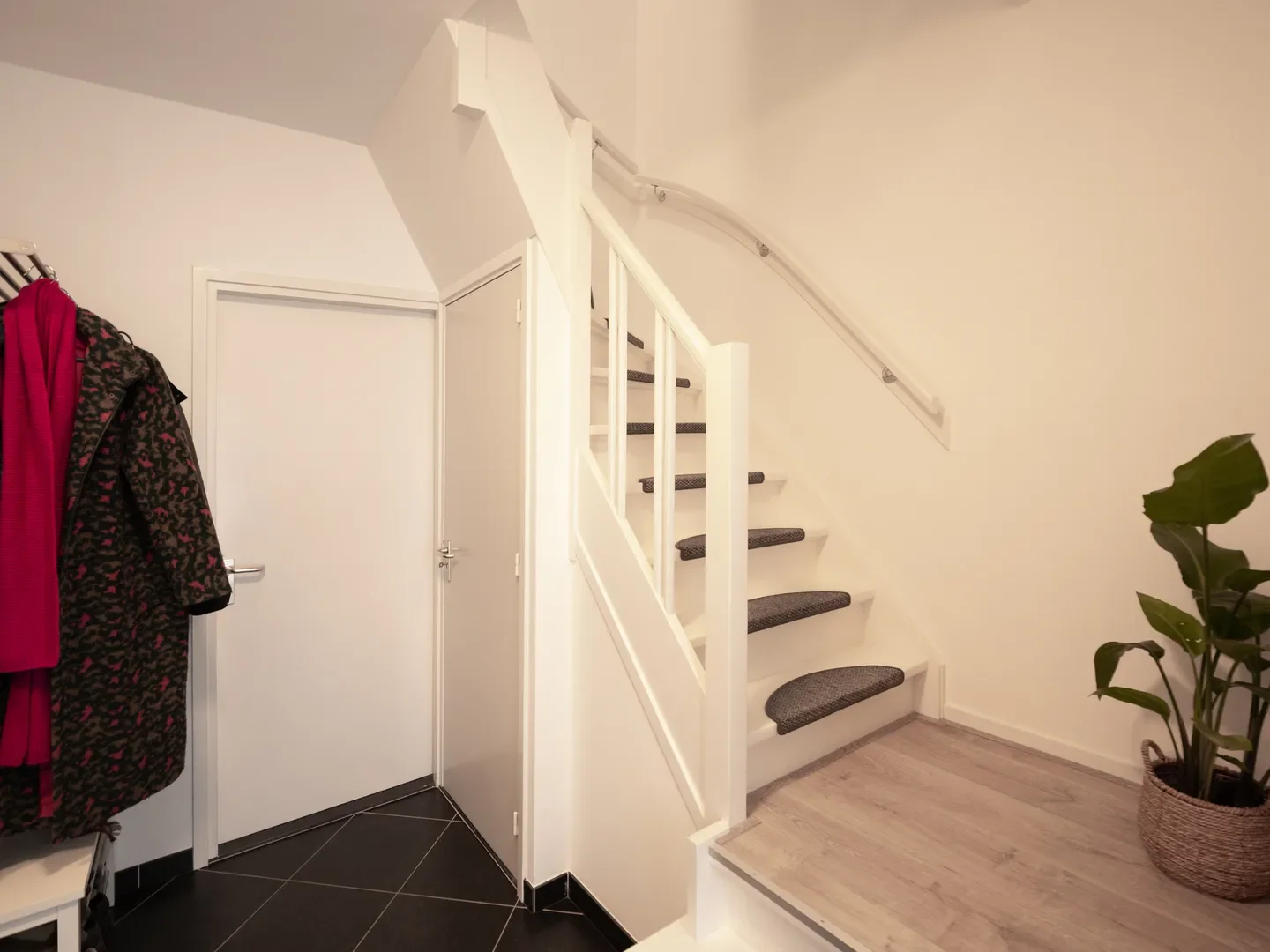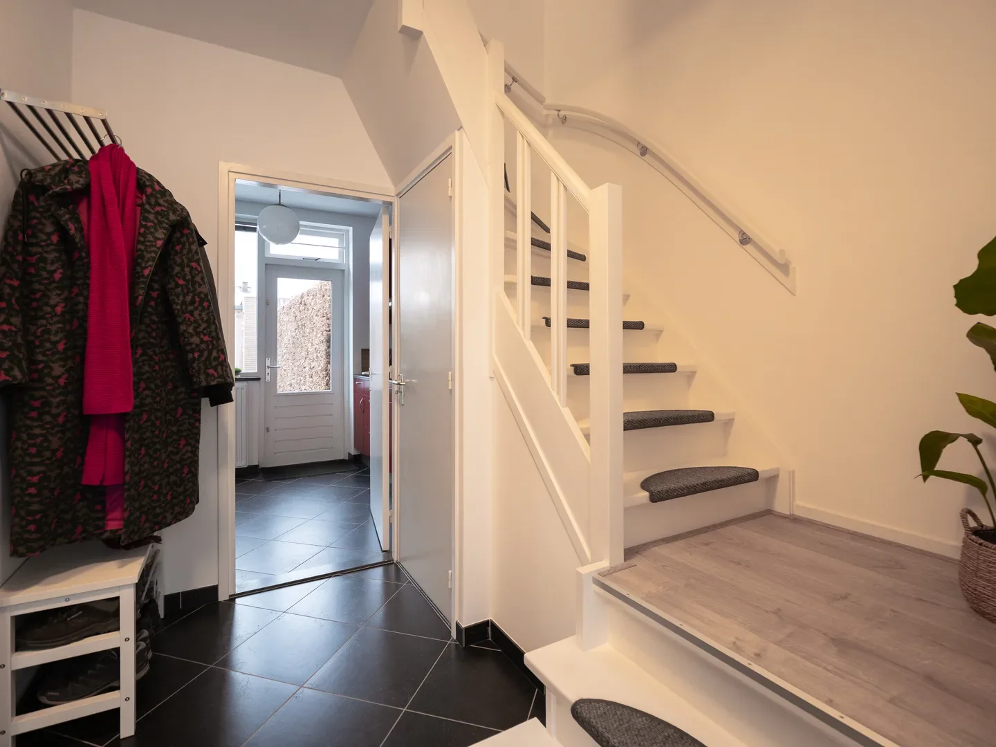 De indeling van de woning bestaat uit een droge kelder van 8m², een hal met gemoderniseerde voorzieningen, en een woonkamer met uitzicht op de tuin. Op de eerste verdieping zijn er drie slaapkamers en een badkamer met vloerverwarming. De zolder is bereikbaar via een vaste trap en biedt extra bergruimte en een vierde slaapkamer.