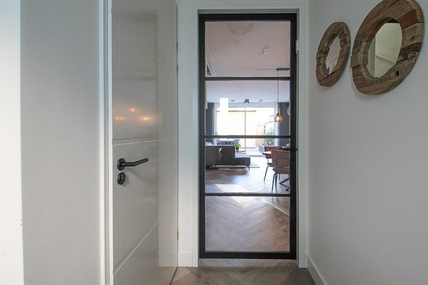 Entree/hal met toiletruimte, meterkast en een mooie glazen deur naar de fijne, ruime woonkamer.