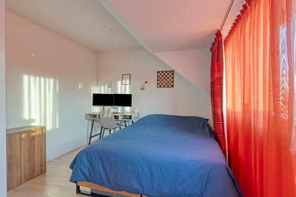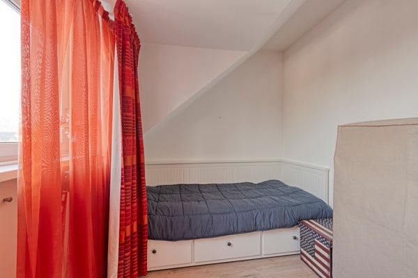 De 4e, verrassende slaapkamer met een slaap-/chillruimte, heeft een forse dakkapel aan de voor & achterzijde. Door de 2 kunststoffen dakkapellen en de handige knieschotten wordt het woonoppervlak behoorlijk vergroot.