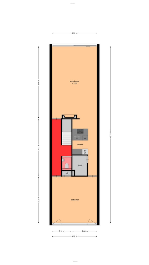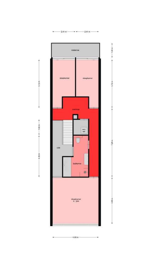 - De tussenwoning heeft een woonoppervlakte van 170 m² en beschikt over 5 kamers, waarvan 3 slaapkamers;