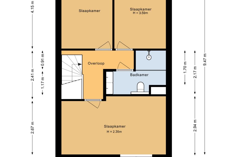 - De tussenwoning heeft een woonoppervlakte van 105 m² en beschikt over 4 kamers, waarvan 3 slaapkamers;