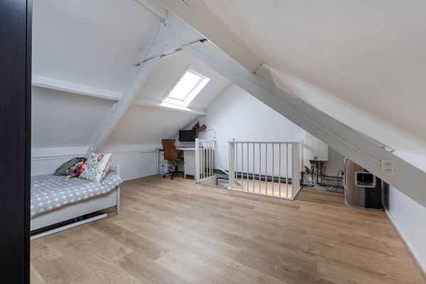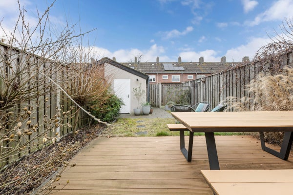 Op de eerste verdieping zijn er drie slaapkamers en een moderne badkamer, vernieuwd in 2020. Een vaste trap leidt naar de ruime zolderkamer met Velux dakramen. De verzorgde tuin heeft een terras en vrijstaande berging. Deze woning biedt alles voor een fijne leefomgeving.