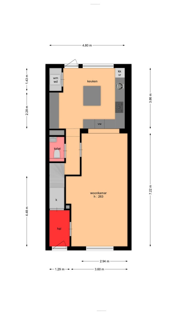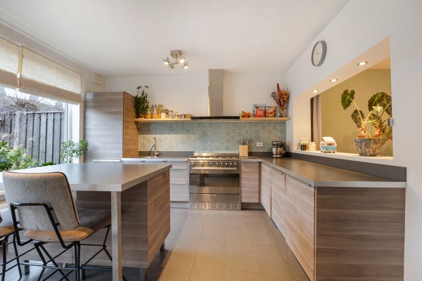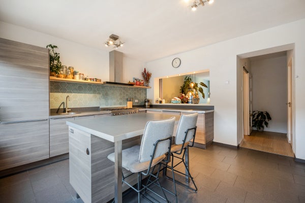 Bij binnenkomst in de entree heb je toegang tot de woonkamer met pvc vloer en vloerverwarming, die ruimte biedt voor een zithoek en eettafel. De open verbinding naar de keuken, voorzien van kookeiland en moderne apparatuur, maakt het gezellig.
