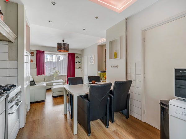 Zoek je een woning met een praktische indeling en een fijne achtertuin? Dan is de woning aan de Dr. Struyckenstraat 158 geschikt voor jou. De woning biedt een royale woonkamer met laminaatvloer en een serre, en op de tweede verdieping zijn extra voorzieningen zoals een toilet en ligbad. Deze eindwoning, gebouwd in 1949, heeft een woonoppervlakte van 89 m² en een perceel van 206 m². De woning heeft in totaal vijf kamers, waaronder twee slaapkamers en een eenvoudige badkamer met douche en wastafel. De achtertuin met gazon en bestrating is ideaal om te ontspannen. Gelegen nabij speeltuinen en belangrijke uitvalswegen, evenals het Dr. Struyckenplein en de binnenstad van Breda binnen handbereik.