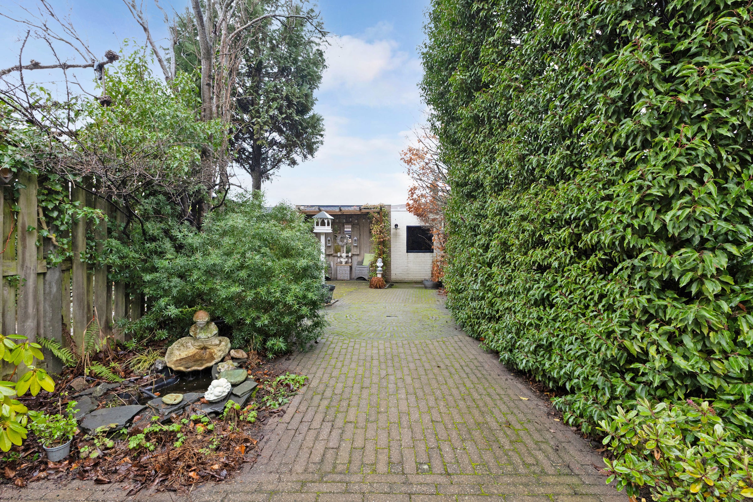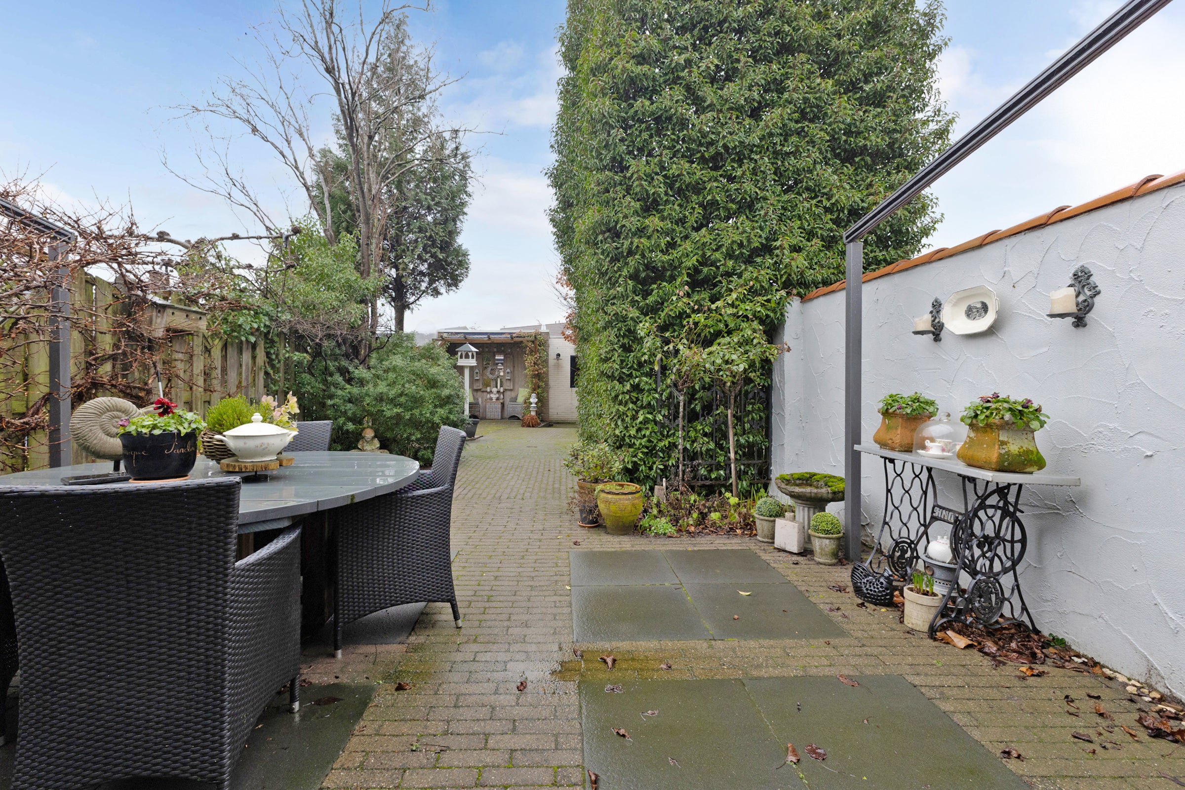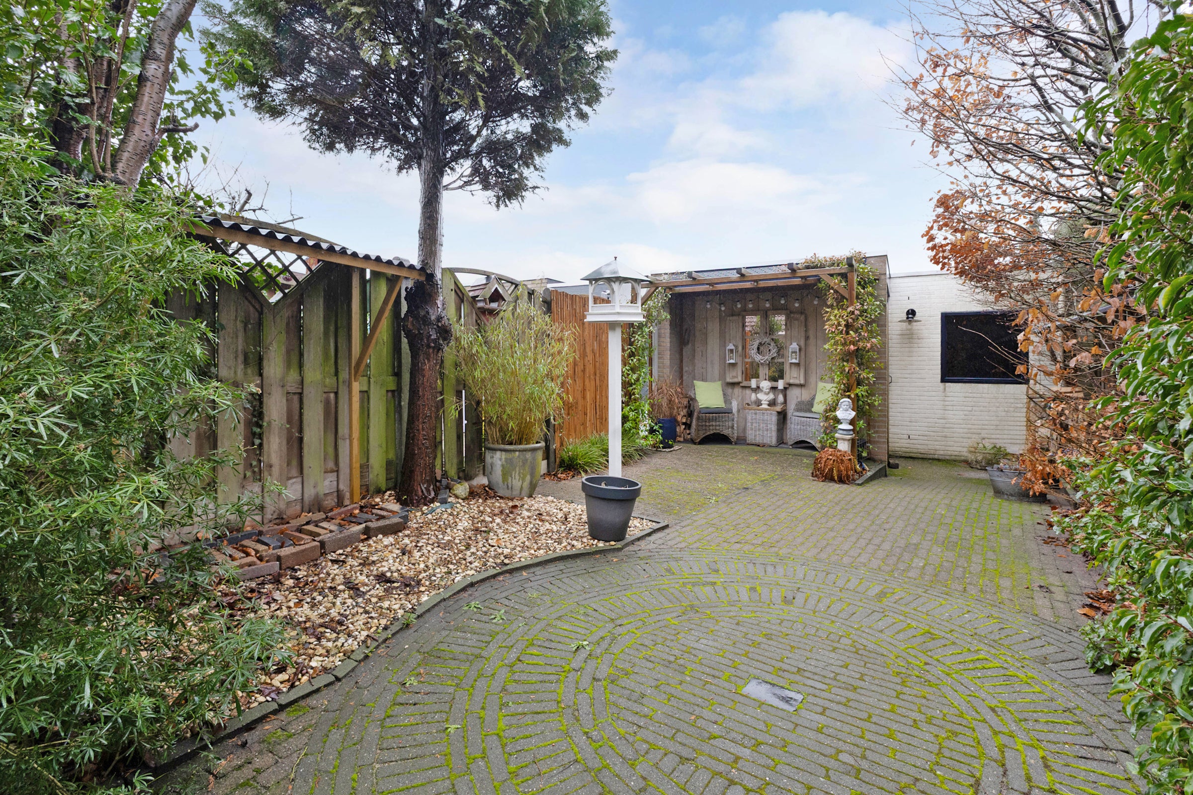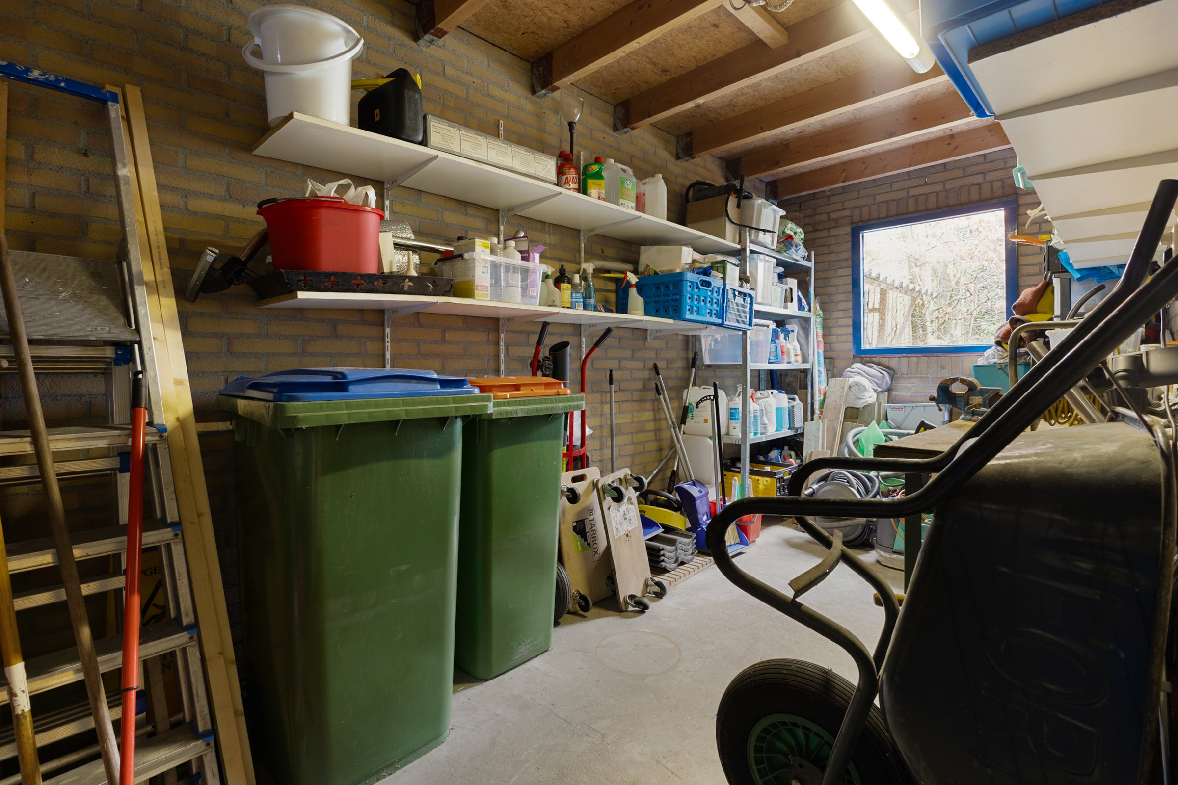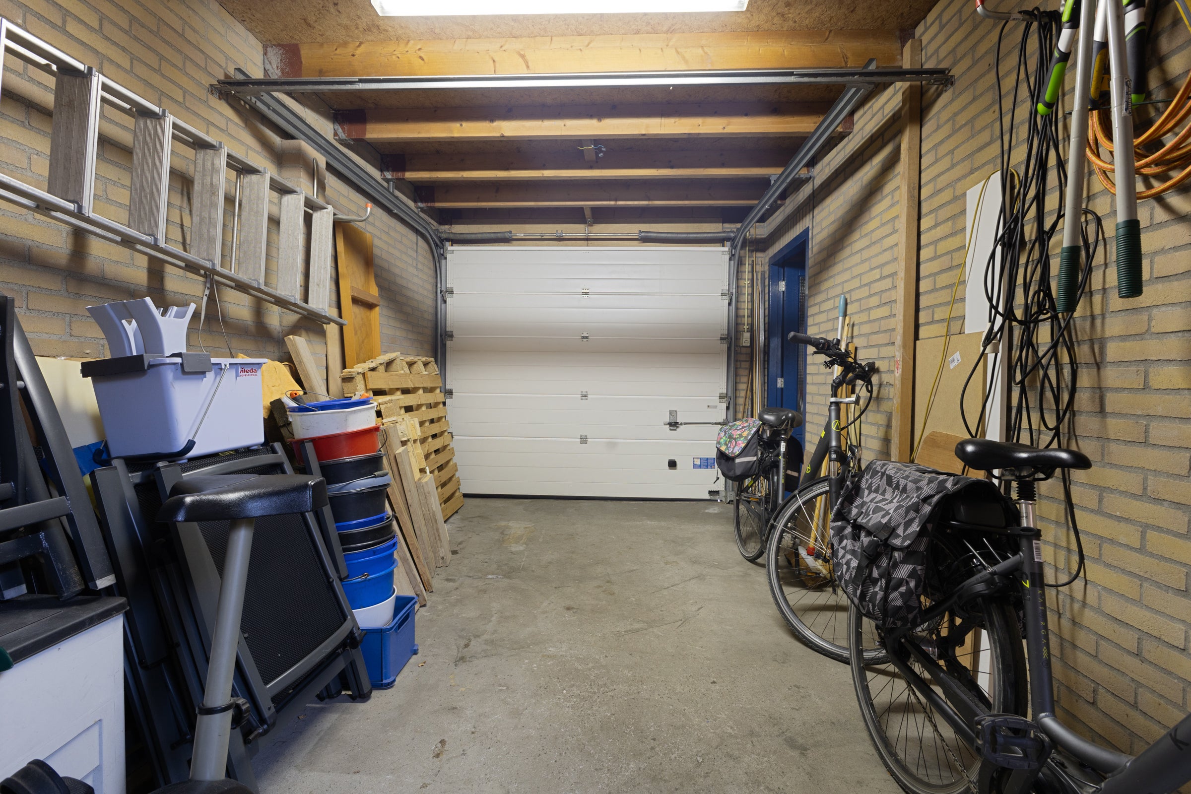 De onderhoudsvrije tuin heeft een terras met zonnescherm en toegang tot een garage met elektrische deur. Dit is een compleet huis, klaar voor een nieuwe bewoner.
