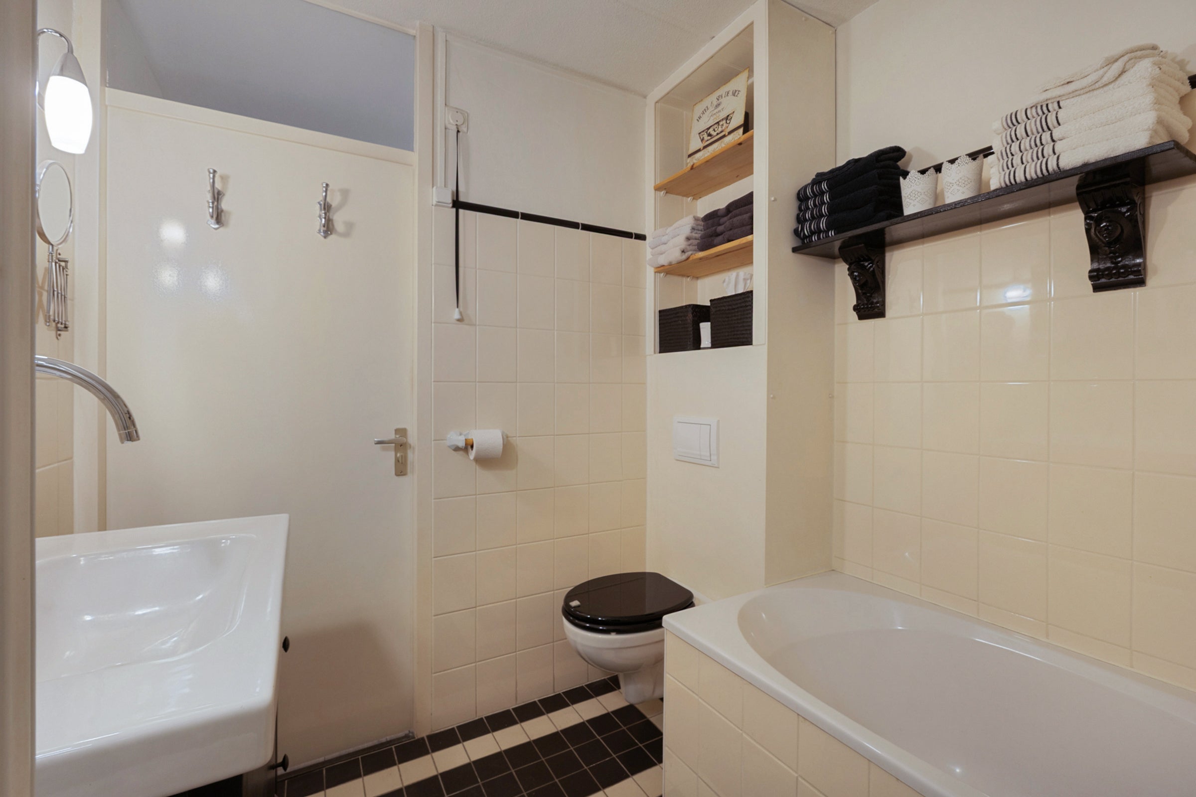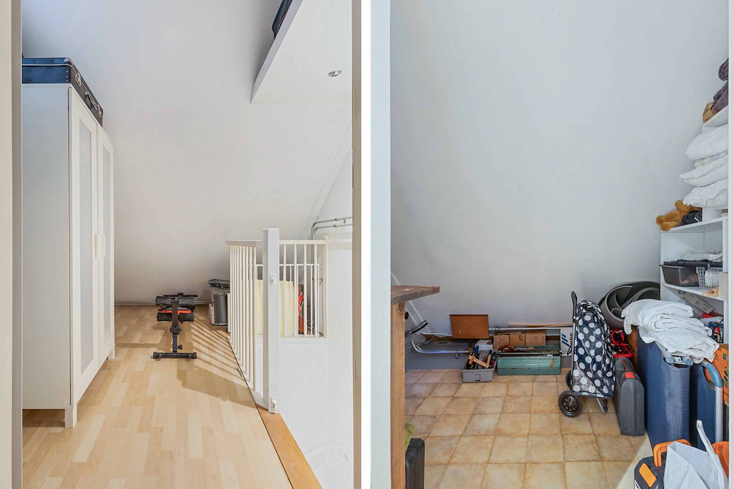 Boven zijn er drie ruime slaapkamers. De badkamer is voorzien van een douche, ligbad, wastafelmeubel en toilet. De zolder beschikt over extra berging en kan als slaapkamer of werkplek worden gebruikt.