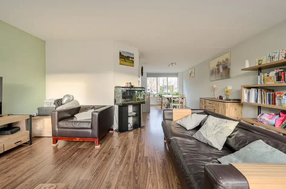 - De tussenwoning heeft een woonoppervlakte van 124 m² en beschikt over 4 kamers, waarvan 3 slaapkamers;