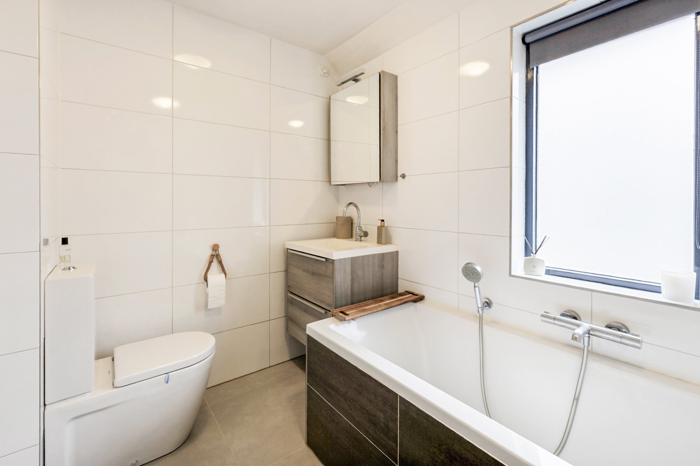 Deze moderne en instapklare tussenwoning ligt in de geliefde woonwijk Overkroeten. De woning, gebouwd in 1992, heeft een frisse uitstraling door de witte breukstenen gevel en is uitstekend onderhouden. Met drie volwaardige woonlagen en een dakkapel over bijna de volledige breedte, biedt het huis veel ruimte en comfort. De tuingerichte woonkamer is licht en grenst aan een moderne keuken. Op de eerste verdieping bevinden zich twee ruime slaapkamers, met de mogelijkheid om een derde slaapkamer te creëren. De badkamer is praktisch ingericht met een ligbad, douche en toilet. De zolderverdieping is ruim en multifunctioneel. De zonnige achtertuin op het zuidwesten heeft een veranda en diverse terrassen, ideaal voor ontspanning.