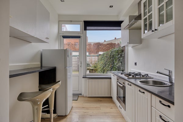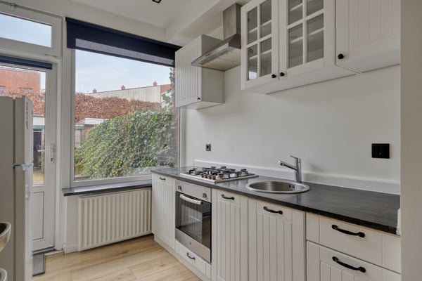 Deze knusse, lichte tussenwoning met een westelijk georiënteerde achtertuin heeft drie slaapkamers op de verdieping. De woning is uitgerust met kunststof kozijnen en enkele glas-in-loodramen. Gelegen aan een doorgaande weg in de wijk Heuvel, zijn er voldoende wandelmogelijkheden, zoals het nabijgelegen Zaartpark. Voor dagelijkse boodschappen kun je naar het Dr. Struyckenplein met zijn diverse winkels, en het centrum van Breda ligt op slechts vijf fietsminuten. Binnen is er een doorzonwoonkamer, een open keuken met eetbar en toegang tot de tuin, en de badkamer beschikt over een inloopdouche. Op de eerste verdieping vind je drie slaapkamers. Daarnaast biedt de woning externe berging en parkeermogelijkheden in de nabijheid.