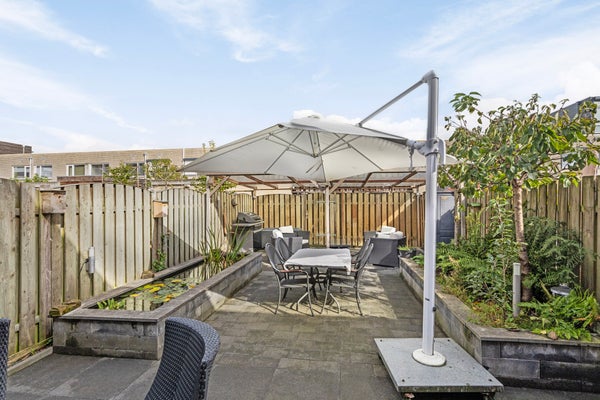 Op een unieke locatie aan het Kroeteneiland in de Haagse Beemden ligt deze bijzonder ruime eengezinswoning. Met 145 m² woonoppervlakte heeft het huis vier slaapkamers en drie badkamers, perfect voor grote gezinnen of een combinatie van wonen en werken. Bij binnenkomst via de eigen oprit, die ruimte biedt voor één of twee auto’s, vindt u een slaapkamer met eigen badkamer op de begane grond en een praktische bijkeuken. De eerste verdieping bevat een lichte woonkamer met uitzicht over water en natuur, een moderne keuken en een tweede badkamer. De bovenste verdieping heeft twee slaapkamers, een derde badkamer en toegang tot een dakterras op het zuiden. De verzorgde tuin heeft een overkapping en biedt een rustige plek om te ontspannen, terwijl de ligging nabij voorzieningen en natuur ideaal is.
