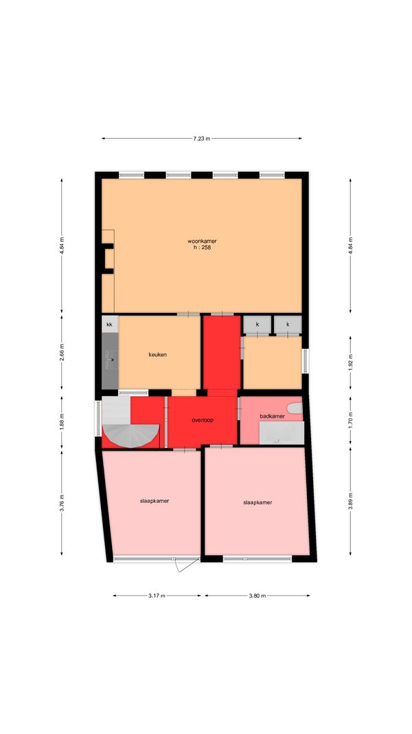 - De tussenwoning heeft een woonoppervlakte van 222 m² en beschikt over 4 kamers, waarvan 2 slaapkamers;