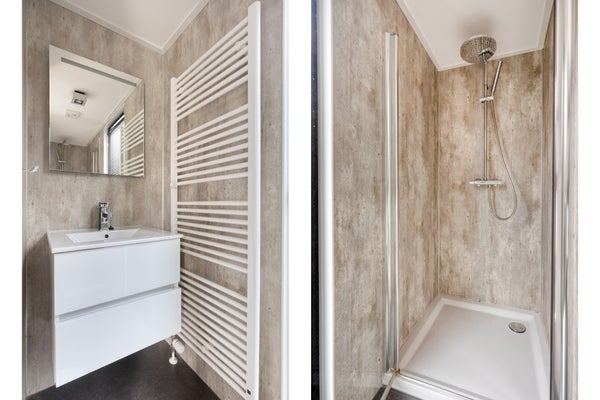 - De woning beschikt onder andere over de volgende voorzieningen: Douche, Schuifdeuren, Toilet.