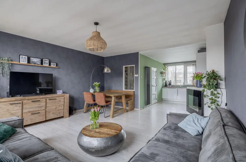 - De tussenwoning heeft een woonoppervlakte van 117 m² en beschikt over 5 kamers, waarvan 3 slaapkamers;