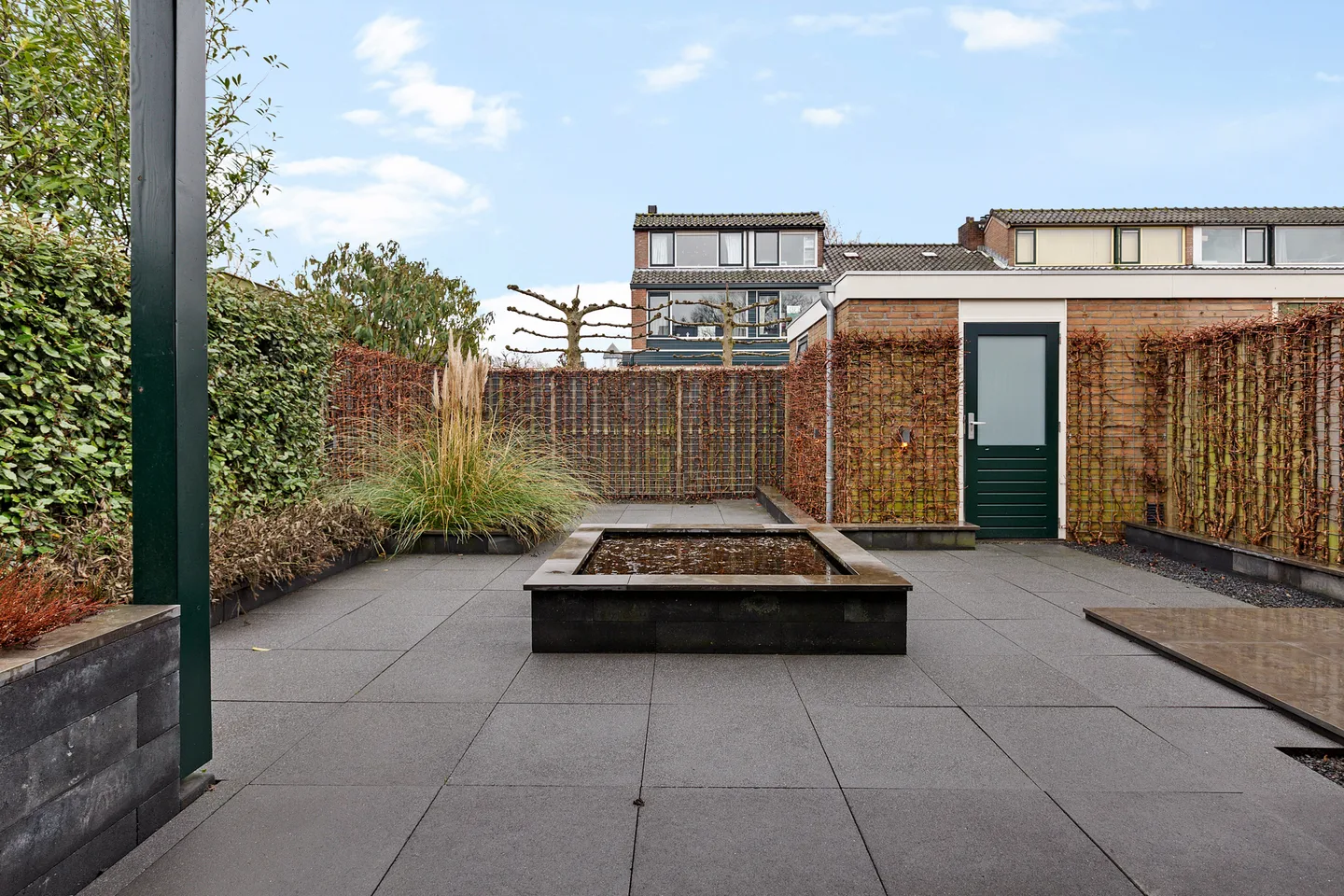 Op de eerste verdieping zijn drie slaapkamers te vinden, evenals een badkamer met douche en wastafel. Via een vlizotrap is de bergzolder bereikbaar, waar de cv-ketel uit 2017 en de zonnepanelen zijn geplaatst. De royale tuin en de aangebouwde overkapping bieden extra mogelijkheden om buiten te genieten. Deze woning, met energielabel C en gelegen dichtbij scholen en supermarkten, is zeker een bezichtiging waard.