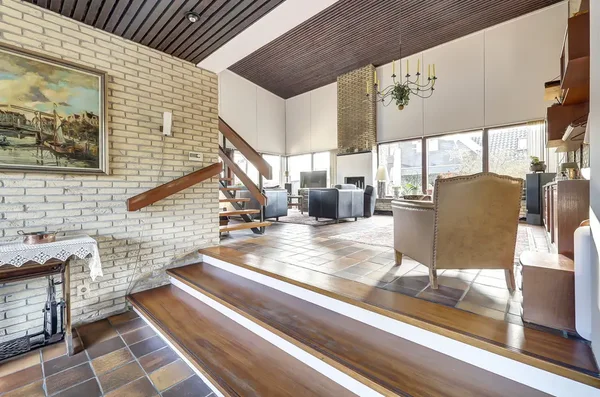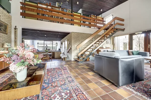 Deze royale vrijstaande woning uit de jaren '70 biedt veelzijdigheid door multifunctionele ruimtes, een dubbele garage en een zonnige tuin rondom. Gelegen op een perceel van 959 m², is deze woning ideaal voor dubbele bewoning of werken aan huis. De grote begane grond heeft een entreehal die leidt naar een split-level woonkamer met vide, licht door vele ramen en deuren naar de tuin. De half-open keuken is van alle gemakken voorzien, naast een bijkeuken en sanitaries. Daarnaast zijn er vier multifunctionele kamers en een badkamer met douche en ligbad. De eerste verdieping heeft vier slaapkamers en twee badkamers. Buiten vindt u een verzorgde tuin, carport en voldoende parkeermogelijkheden. Met een woonoppervlakte van 288 m² heeft deze woning uitstekende gebruiksmogelijkheden.
