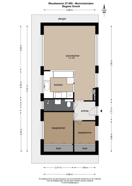 Op het perceel van 260 m² eigen grond bevinden zich een vrijstaande garage van 21 m² en een berging van 3 m². De garage en woonark zijn voorzien van nieuwe dakbedekking in 2023. U parkeert hier eenvoudig op eigen terrein (in de garage) en heeft volop ruimte rondom de woning om te genieten van het buitenleven.