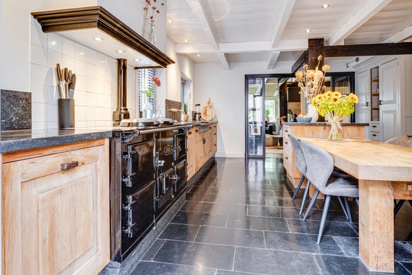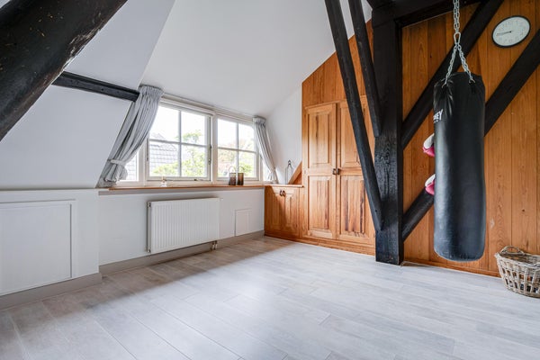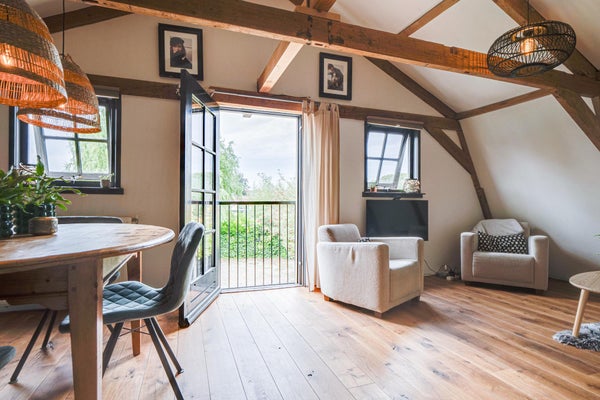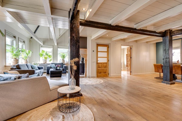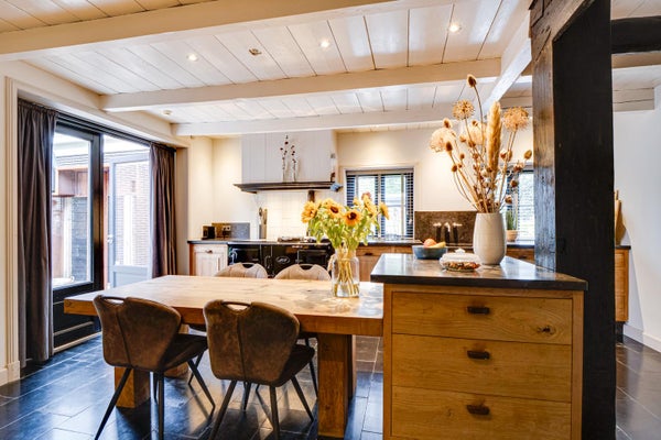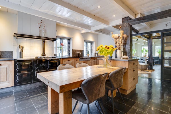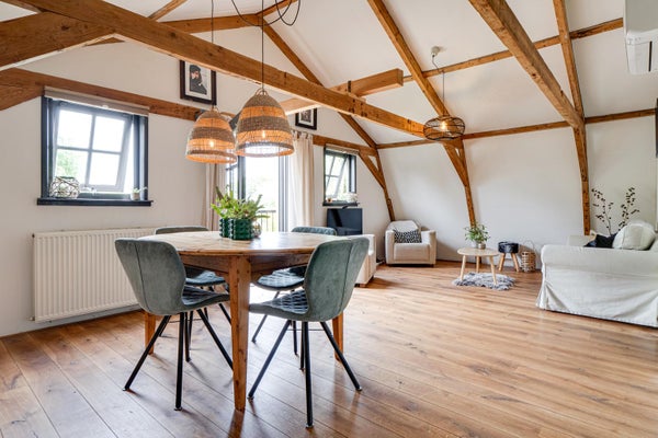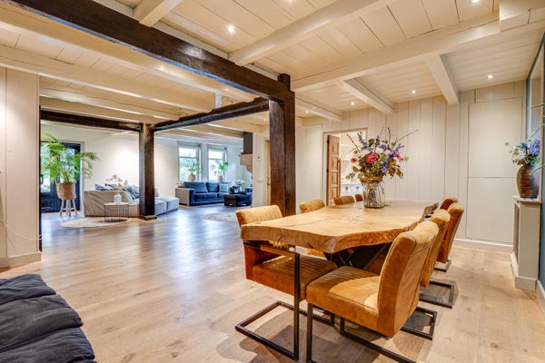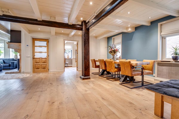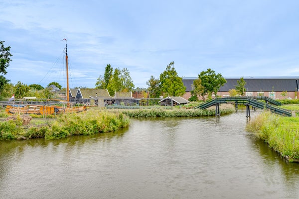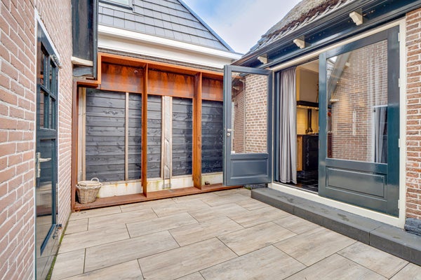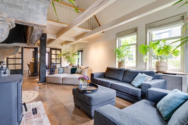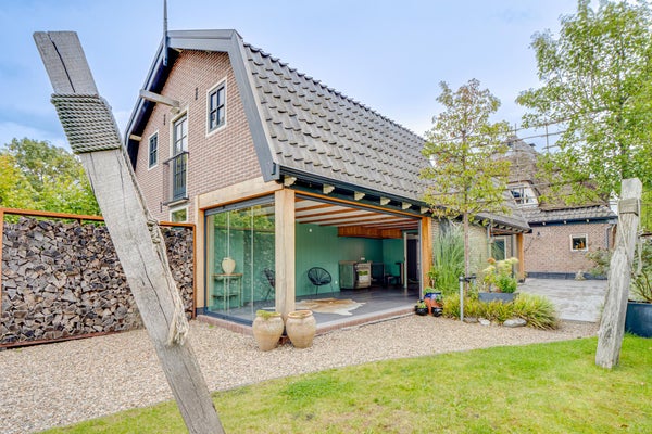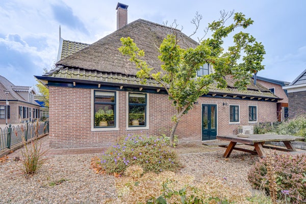In het hart van Langedijk ligt een unieke rietgedekte woonboerderij, Dorpsstraat 117, uit 1870. Deze onder architectuur gerestaureerde stolpboerderij biedt een perfecte mix van historische charme en modern comfort. De woning heeft een ruime woonkamer met een robuust balkenplafond, een sfeervolle schouw, en een open indeling met vide. De woonkeuken is uitgerust met een AGA-fornuis en biedt een ideale plek voor gezellige diners. Op de eerste verdieping zijn vier slaapkamers en een luxe badkamer met jacuzzi en douche. Het bijgebouw, een voormalige kolenschuur, beschikt over een compleet appartement, perfect voor gasten of als B&B. De tuin rondom de woning is mooi aangelegd met verschillende terrassen en biedt uitzicht op de Broekerveiling en open vaarwater. Comfort is verzekerd met vloerverwarming, airconditioning en een gashaard.