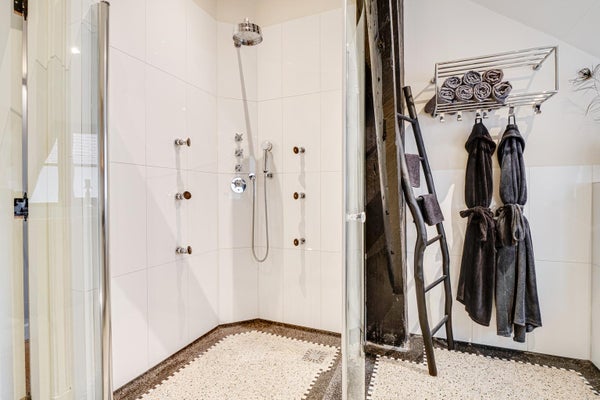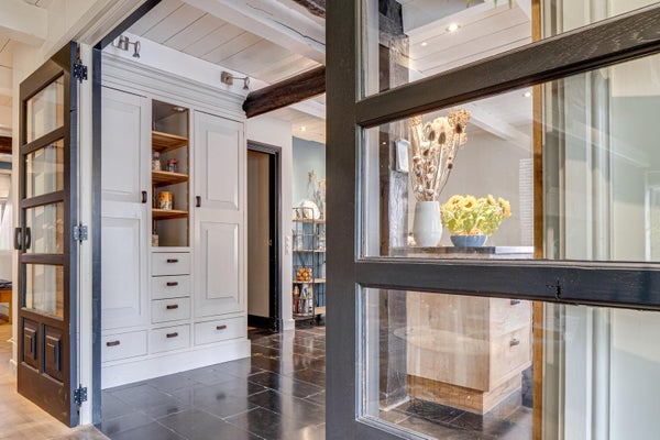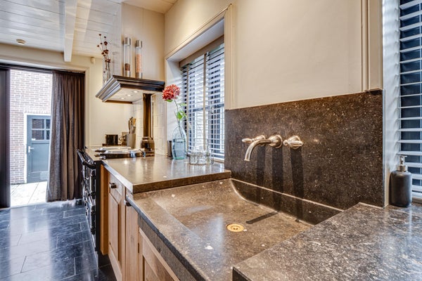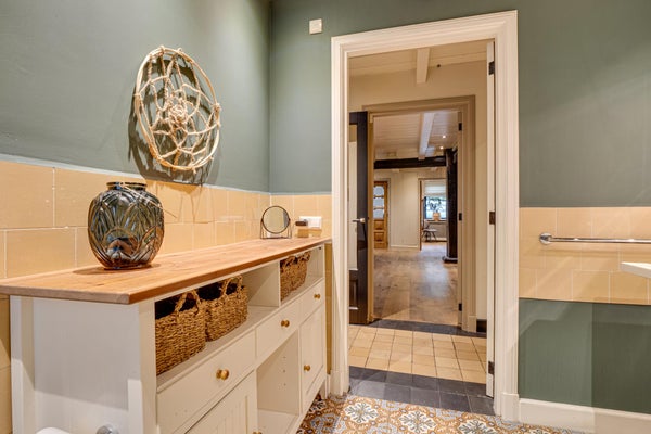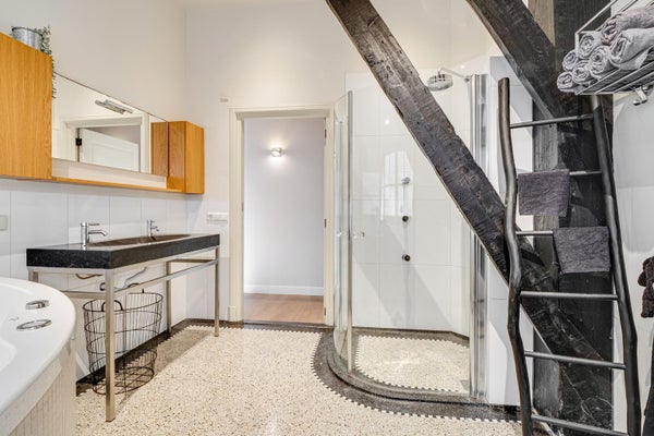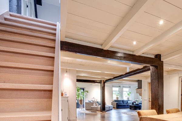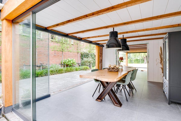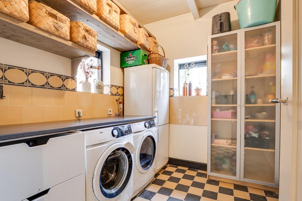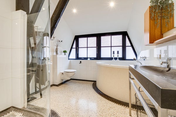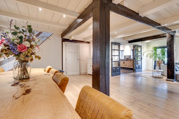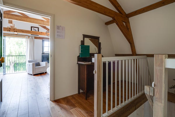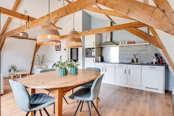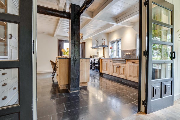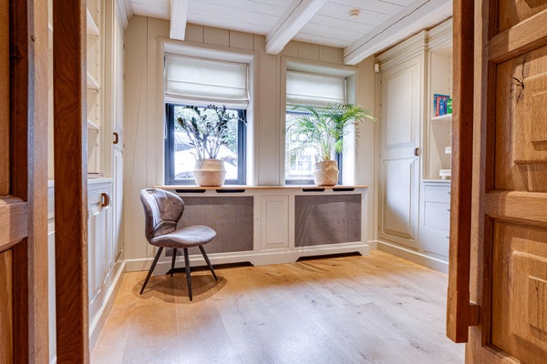 In het hart van Langedijk ligt een unieke rietgedekte woonboerderij, Dorpsstraat 117, uit 1870. Deze onder architectuur gerestaureerde stolpboerderij biedt een perfecte mix van historische charme en modern comfort. De woning heeft een ruime woonkamer met een robuust balkenplafond, een sfeervolle schouw, en een open indeling met vide. De woonkeuken is uitgerust met een AGA-fornuis en biedt een ideale plek voor gezellige diners. Op de eerste verdieping zijn vier slaapkamers en een luxe badkamer met jacuzzi en douche. Het bijgebouw, een voormalige kolenschuur, beschikt over een compleet appartement, perfect voor gasten of als B&B. De tuin rondom de woning is mooi aangelegd met verschillende terrassen en biedt uitzicht op de Broekerveiling en open vaarwater. Comfort is verzekerd met vloerverwarming, airconditioning en een gashaard.