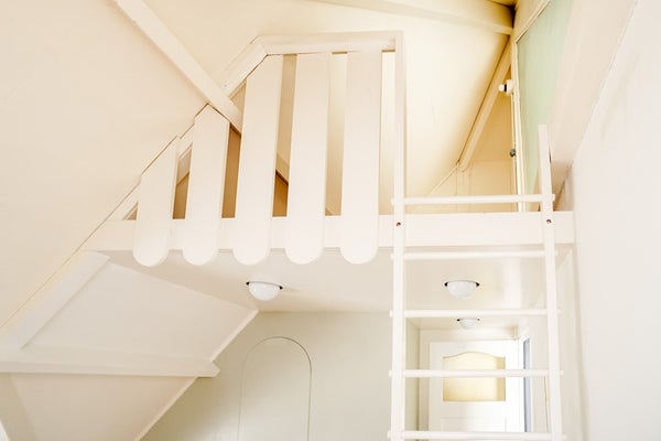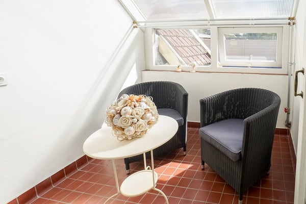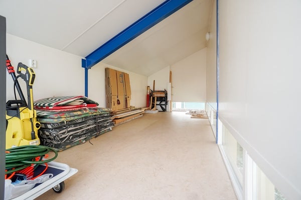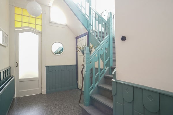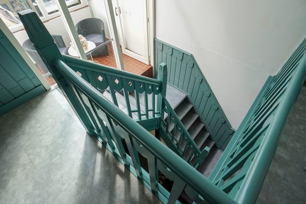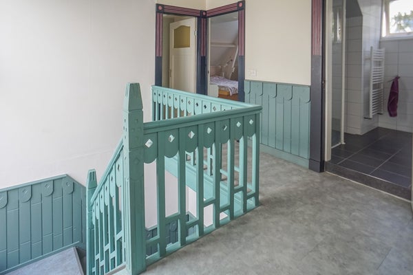 Op de eerste verdieping vindt u drie ruime slaapkamers – waarvan één met balkon en één met een speelse zolderverdieping – en een lichte, moderne badkamer met inloopdouche, wastafel, tweede toilet en vloerverwarming. De serre halverwege de trapopgang zorgt voor extra licht en speelsheid. Op de zolder biedt de vliering met veiligheidsglas een verrassende bron van indirect daglicht.