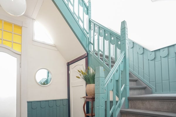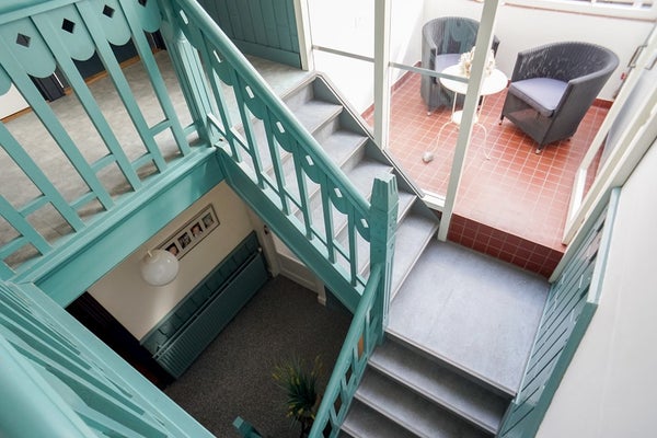 Het absolute pronkstuk? Het indrukwekkende trappenhuis: van beneden kijkt u wel 10 meter omhoog naar het houten geraamte van de woning. Een uniek en adembenemend aanzicht!