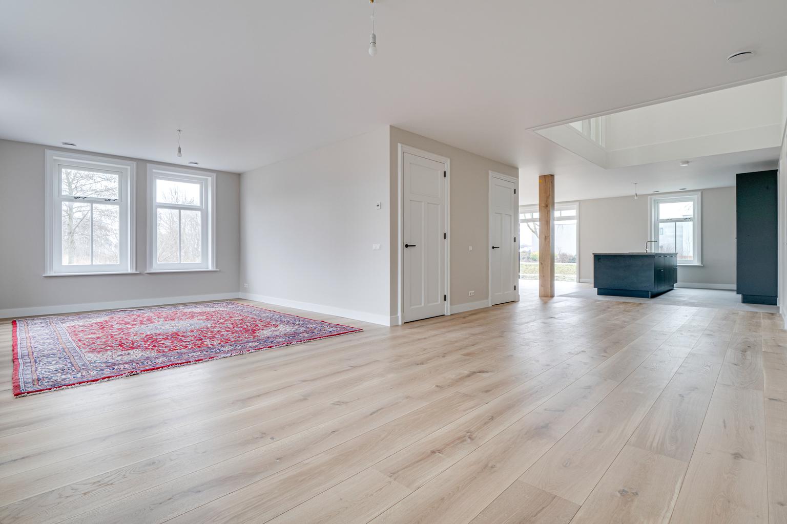 Op het prachtige nieuwbouw-eiland Bijloort staat een levensloopbestendige boerderijwoning. Deze royale woning, gebouwd in 2025, biedt met een inhoud van ongeveer 1014 m³ een uitzonderlijke leefruimte van circa 246 m². Bij binnenkomst ervaart men de luxe en kwaliteit, met strakke afwerkingen en eikenhouten vloeren. De grote leefkeuken, uitgerust met hoogwaardige Siemens-apparatuur, is een ideale plek om samen te zijn. Op de begane grond bevindt zich ook een kantoor/slaapkamer en een ruime bijkeuken met aansluitingen voor wasmachines. Boven zijn vier grote slaapkamers met airconditioning, waaronder een master bedroom met luxe badkamer. De woning is energiezuinig en beschikt over een perceel van 853 m² met privacy en water aan twee zijden. Deze unieke omgeving biedt rust en groen, ideaal voor jarenlang woonplezier.