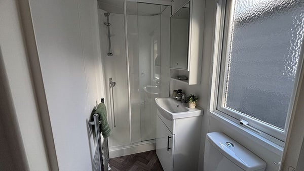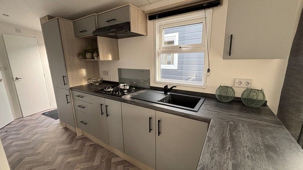 De indeling van deze stacaravan is perfect. Een vaste inrichting met twee slaapkamers inclusief bedden, een badkamer en keuken maar ook een fijn woongedeelte. De kleuren en materialen van het interieur zijn op elkaar afgestemd. Licht en neutraal, dat past bij iedere woonstijl. Je hoeft hier alleen nog maar de meubelen te plaatsen en het naar je eigen smaak in te richten. De verkoopprijs is een optelsom van de stacaravan, plaatsen, aansluiten, het afwerken van de onderzijde en mooie opstappen.