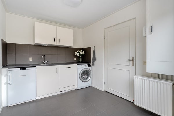 Aan de achterzijde bevinden zich de woonkeuken, bijkeuken en aangebouwde berging.