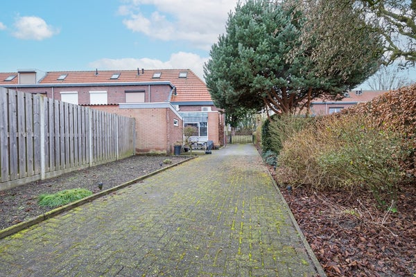 De diepe achtertuin is voor het grootste deel bestraat en hier kan op eigen terrein worden geparkeerd. De garage in de achtertuin is uitermate geschikt voor stalling van auto, fietsen, scooter. Maar ook tuingereedschap kan hier een perfecte plek vinden.