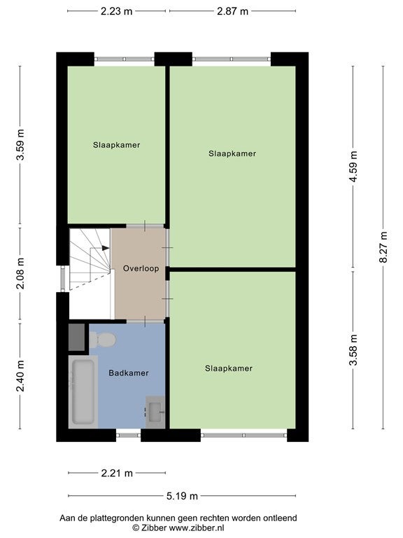 Op de bovenste verdieping bevinden zich drie slaapkamers, allen voorzien van kunststof kozijnen, HR++ beglazing en rolluiken. De badkamer beschikt over een ligbad, wastafel en toilet.