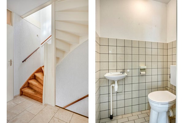 Daarnaast is er een hal met toilet en trapopgang naar de tweede verdieping.