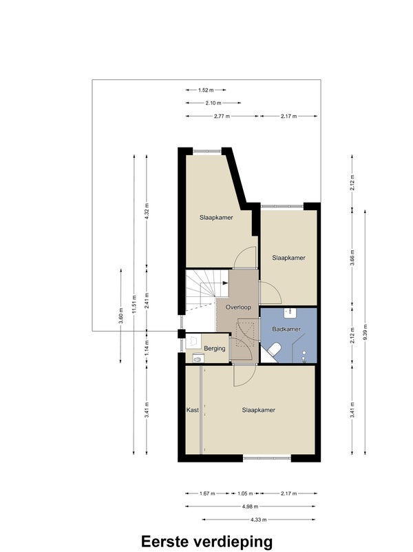 - De tussenwoning heeft een woonoppervlakte van 117 m² en beschikt over 12 kamers, waarvan 3 slaapkamers;