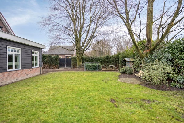Via een poort tussen de woning en de garage toegang tot de achtertuin. De tuin is volledig omheind en biedt volledige privacy. Met een o.a. een gazon, aangeplante borders met volwassen beplanting, een houten tuinhuis en een grondwaterput. Vanaf de straat is de tuin ook makkelijk via een brede poort te bereiken.