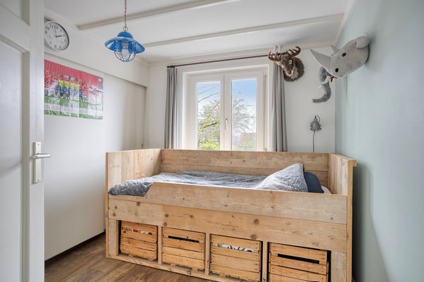 De drie slaapkamers hebben een PVC-vloer, stucwerk wanden en een balkenplafond. De kleinste slaapkamer heeft een vaste schuifwandkast en de andere twee slaapkamers een muurkast. Alle slaapkamers zijn voorzien van hardhouten raamkozijnen (draai-/kiep) met HR++ beglazing en rolluiken.