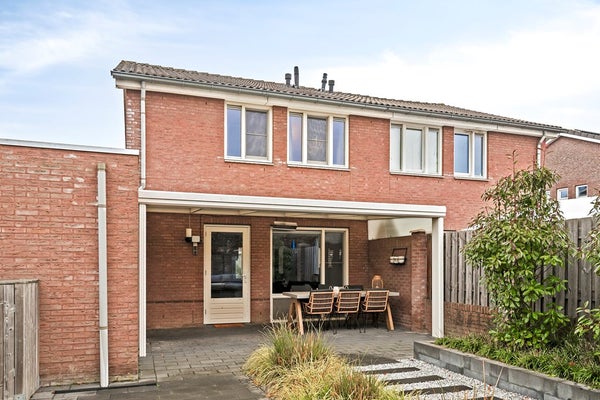 Via een deur naar de achtertuin, welke volledig is omheind en veel privacy biedt. Direct aan de woning bevindt zicht over de gehele breedte een aluminium terrasoverkapping met polycarbonaat dakplaten, inbouwspots en een heater. De onderhoudsvriendelijke tuin heeft o.a. een kunstgazon, een 2e terras en aangeplante borders met volwassen beplanting met diverse druppelslangen.