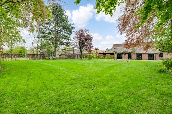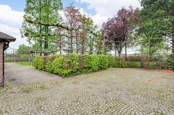 De tuin is prachtig ingedeeld en heeft vele oude bomen, is omringd door een prachtige eikenborder en beukenhaag en is geheel omheind, voorzien van een gazon en een bestraat terrassen met authentieke bestrating, en wordt afgesloten door een elektrische poort voor extra privacy en veiligheid.