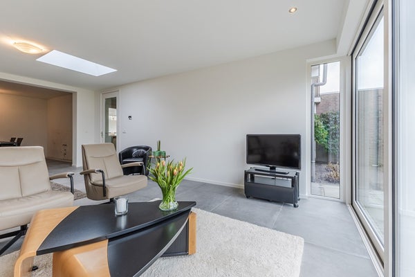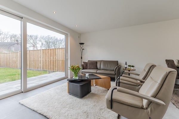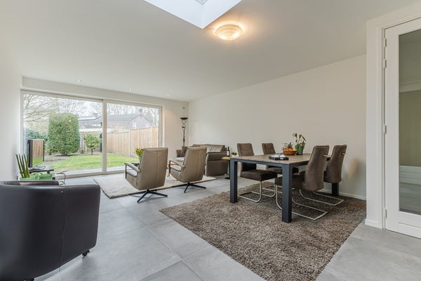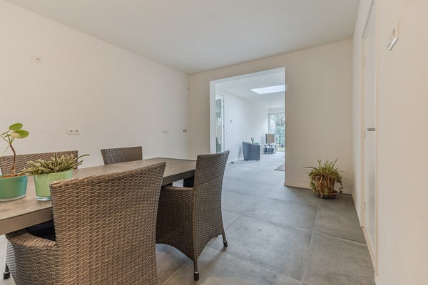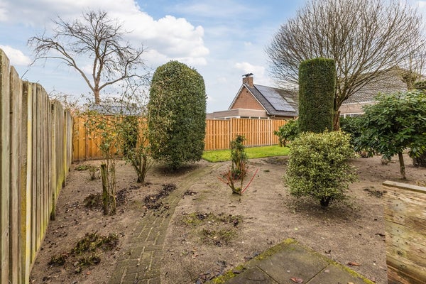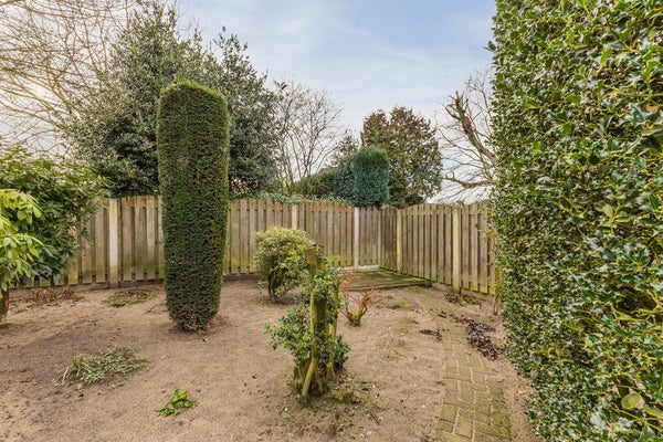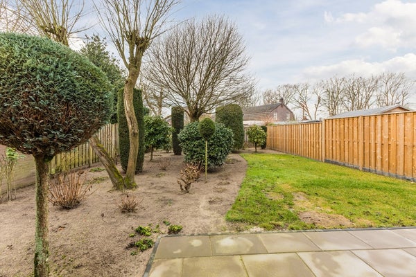 Achter de woning bevindt zich een geheel omsloten tuin met terrassen, gazon en borders met aanplant. Hier geniet je van rust en privacy!