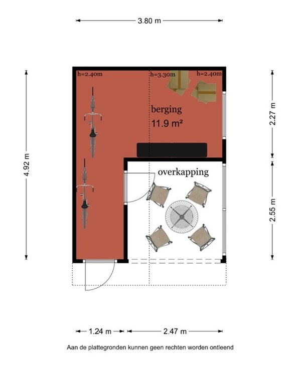 - Aanwezig (50 m², gelegen op het zuidoosten)