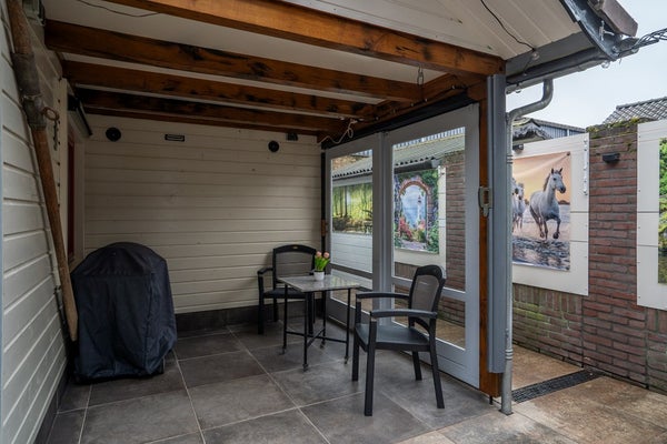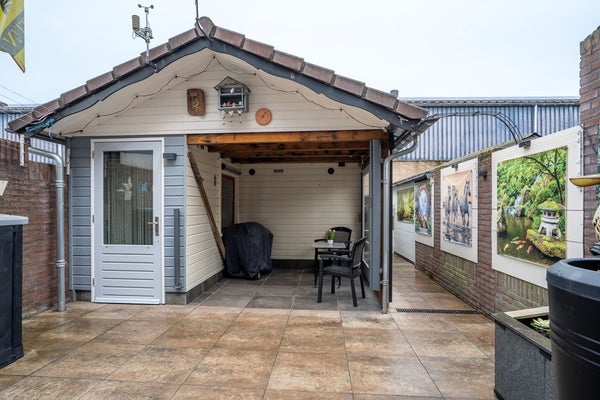 De onderhoudsvriendelijke achtertuin is volledig betegeld en op het zuidwesten gelegen, waardoor je de hele dag van de zon kunt genieten. De tuin is zowel bereikbaar via de uitbouw / keuken als via de eigen achterom. Dankzij de overkapping in de geïsoleerde buitenberging is het ook in alle jaargetijden comfortabel buiten zitten. Bovendien biedt deze berging extra opslagruimte voor bijvoorbeeld tuingereedschap en fietsen, of kan hij gebruikt worden als hobbyruimte.