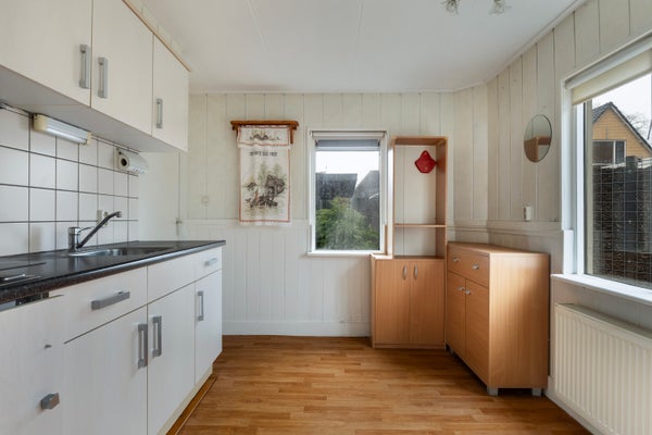 Aan de Schoolstraat 29 in Buitenpost staat deze vrijstaande jaren '30 kluswoning uit 1937, vol karakter en mogelijkheden voor de handige koper. Met een centrale ligging, op loopafstand van winkels en het treinstation, is deze woning ideaal voor renovatie en modernisering. De indeling omvat een hal die toegang biedt tot een woonkamer van samen ±26 m², verdeeld in een voor- en achterkamer, en een eenvoudige keuken met toegang naar de achtertuin. Op de eerste verdieping zijn er twee slaapkamers van respectievelijk ±12,5 m² en 7,6 m². De zolder is bereikbaar via een vlizotrap. Op het terrein is parkeergelegenheid en er staat een vrijstaande houten schuur voor opslag. Kortom, een authentieke woning met potentieel.