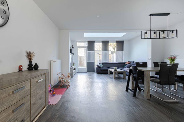 - De tussenwoning heeft een woonoppervlakte van 117 m² en beschikt over 5 kamers, waarvan 3 slaapkamers;