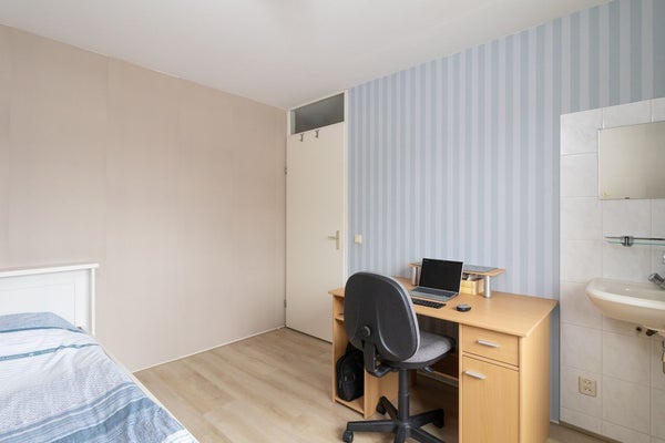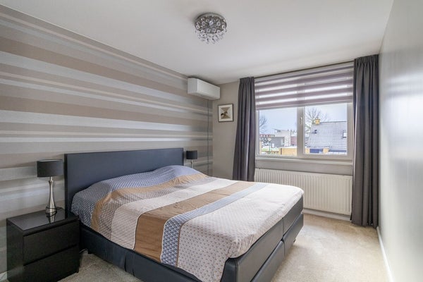 De eerste verdieping beschikt hier over drie slaapkamers, allen van een prettig formaat. De grootste slaapkamer is gelegen aan de achterzijde van de woning is voorzien van airco en biedt volop ruimte voor een tweepersoonsbed en kastenwand. De tweede slaapkamer bevindt zich eveneens aan de achterzijde en is uitstekend geschikt als kinder-, werk- of logeerkamer. Aan de voorzijde ligt de derde slaapkamer, die zich leent voor diverse gebruiksmogelijkheden.