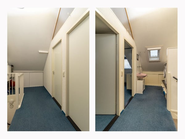 Via een vaste trap bereik je de zolderverdieping, waar je aankomt op de overloop met opstelling van de technische installaties en extra bergruimte.