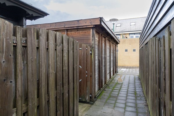 Achterin de tuin bevindt zich een vrijstaande berging, perfect voor het opbergen van tuinmeubilair en gereedschap. Daarnaast is er een praktische achterom.