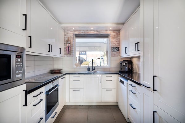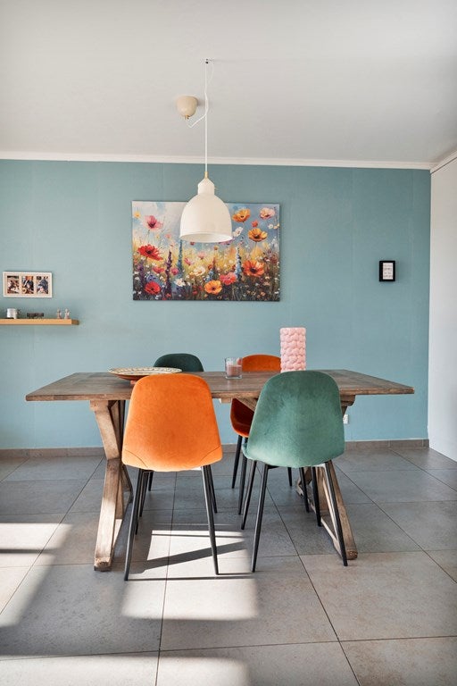 De woonkamer strekt zich royaal uit en biedt volop plek voor een comfortabele zithoek aan de tuinzijde, met voldoende ruimte voor een goede zithoek bij de keuken. Het geheel voelt licht en luchtig, met een prettige lichtinval gedurende de dag.